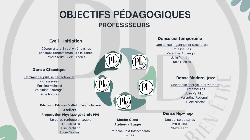 “Cultiver sa force intérieure, son sens artistique, sa créativité, développer un mental et un physique forts en restant connecté à soi et aux autres.” Depuis 2018, Lucie Nicolas a créé un espace de vie dédié aux enfants et adultes ayant choisis la Danse, le Pilates et des pratiques bien-être comme moyen d’expression et d’épanouissement personnel. Une philosophie de vie plaçant le corps et l’esprit au centre de toutes les pratiques dès 4 ans. Dès 2020, Lucie Nicolas ayant de nombreux élèves en cours de danse et Pilates, décide de structurer le centre et de s’entourer d’une équipe pour partager son travail. Après deux agrandissements et des aléas, en 2025, les abonnés du centre bénéficient de 5 à 6 professeurs permanents qui délivrent les cours au côté de Lucie dans la joie, le respect, la bienveillance et l’exigence, nos valeurs communes ! Merci du fond du coeur ! Lucie Nicolas